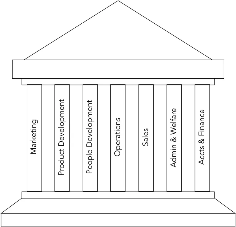 I would recommend the following seven departments as a must-be department for any size of the organisation. I call them as seven pillars of a small business organisation.